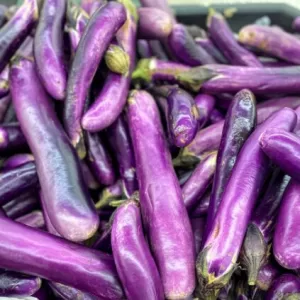 A berinjela chinesa, conhecida como “qiezi” (茄子), é uma variedade de berinjela bastante popular e amplamente utilizada na culinária chinesa. Diferentemente da berinjela comum ocidental, as berinjelas chinesas geralmente são mais longas e delgadas, com uma pele que varia de roxo brilhante a um roxo mais pálido com listras brancas.