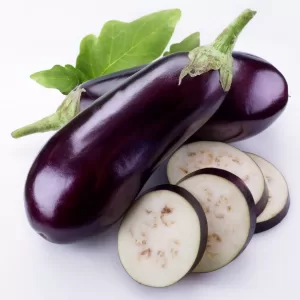 Berinjela italiana, com sua forma alongada e cor violeta profunda