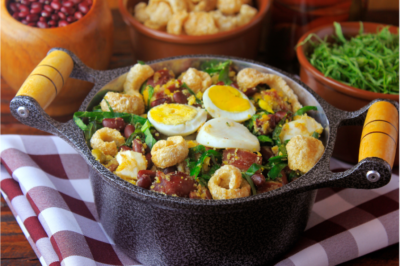 O Feijão Tropeiro é um prato robusto e tradicional da cozinha mineira, carregado de história e sabores. Combinando feijão, farinha de mandioca, ovos, carne de porco e temperos, é uma refeição completa que homenageia os tropeiros, comerciantes do passado que viajavam pelo Brasil transportando mercadorias e cultura.